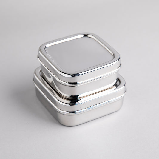 Snackboxen aus Edelstahl sind praktische, quadratische Behälter in verschiedenen Größen. Sie sind stapelbar und lassen sich daher leicht verstauen. Dank der vielfältigen Größen findet sich immer die passende Box für Ihre Snacks.