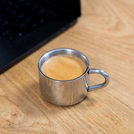 Der Talli Refined Kaffeebecher besteht zu 100 % aus Edelstahl. Dank seiner doppelwandigen Konstruktion bleibt Ihr Getränk länger warm, während die Außenseite nicht heiß wird.