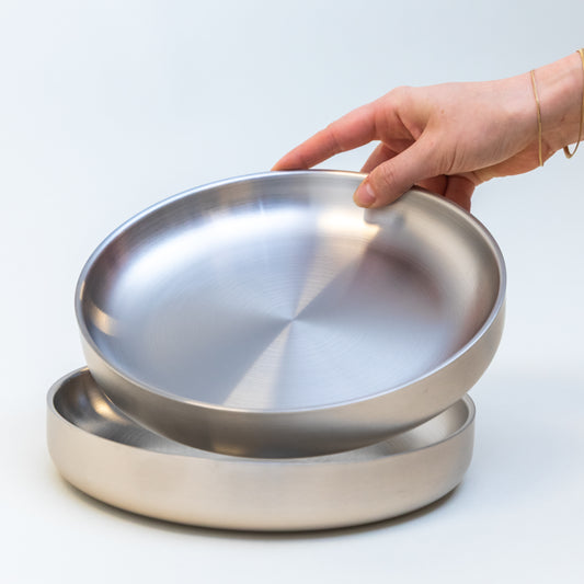 Der Teller Talli Refined ist aus Edelstahl gefertigt und hat einen erhöhten Rand, wodurch er sich für eine Vielzahl von Gerichten eignet. Die Teller sind zudem stapelbar und ermöglichen so eine einfache und platzsparende Aufbewahrung.