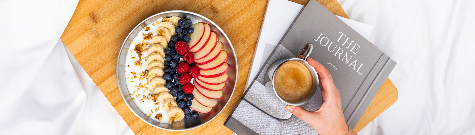 Diese doppelwandige Edelstahlschüssel eignet sich perfekt für Frühstück, Mittag- oder Abendessen. Ideal für Gerichte wie Müsli, Açaí oder Joghurt, aber dank der Doppelwand auch hervorragend für warme Speisen wie Suppe oder Pasta.